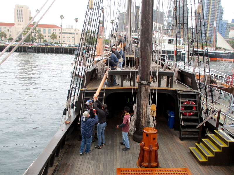 I know the museum’s Pilot boat is being strung with lights for the 55th annual San Diego Bay Parade of Lights, and a small Christmas tree will soon be hoisted to the top of Star of India’s mainmast!