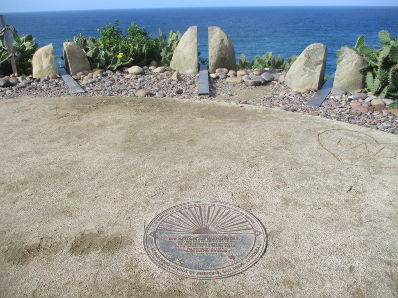 This unique memorial was created several years ago in La Jolla, on the Scripps Institution of Oceanography campus. Words on a circular plaque read: IN MEMORY OF THOSE WHO DONATED THEIR BODIES TO SCIENCE – UC SAN DIEGO SCHOOL OF MEDICINE, SAN DIEGO, CALIFORNIA.