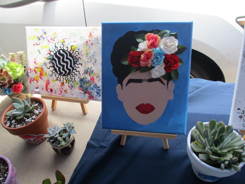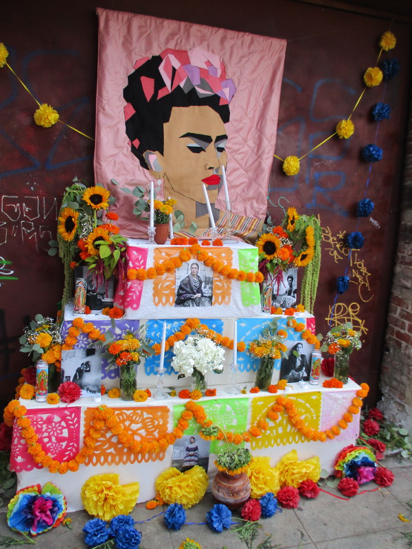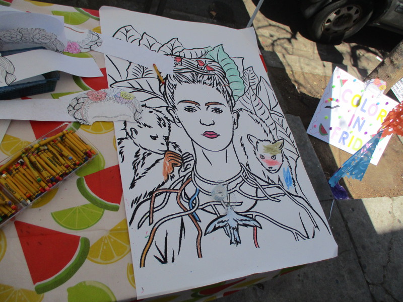 The sidewalks were full of people experiencing the colors, tastes, sounds and smells of the several blocks long festival. There was music, and lowriders, and families, and friendship, and plenty of tasty Mexican food, and lots of art on display, and vendors whose tables overflowed with Frida-themed wares. A traditional Día de los Muertos altar for Frida Kahlo honored the artist’s life.