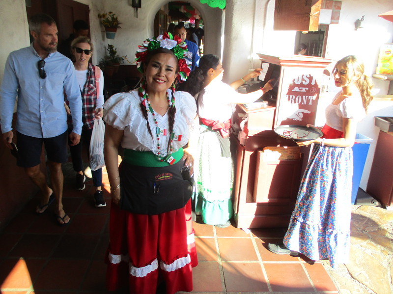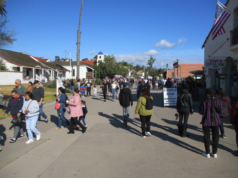 I walked around Old Town today to experience the energy. I observed a big crowd wandering through the State Park, navigating San Diego Avenue’s sidewalks, and dining in festive Mexican restaurants. Many people were smiling!