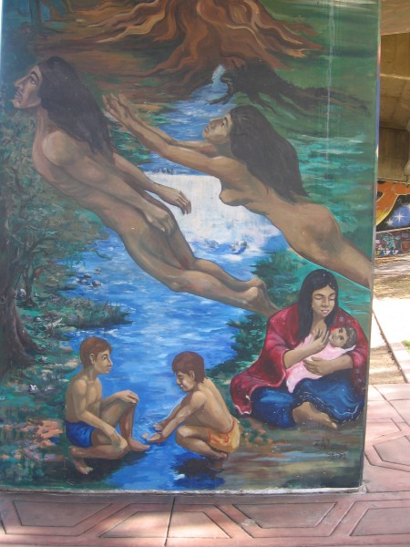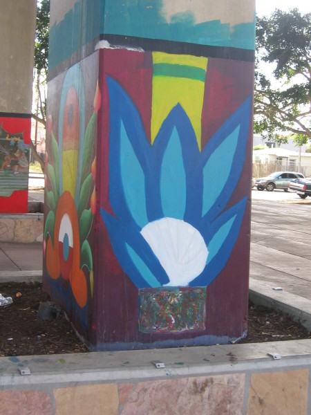 The first photograph shows what I saw as I entered the park, walking up National Avenue from the south. These artists were painting a pillar with an image of Mexico.