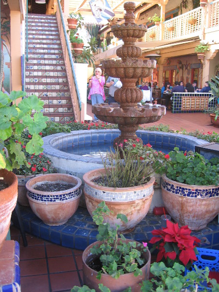 These pics offer a sample of the sort of Mexican-themed eateries one encounters in the commercial part of Old Town, which runs several blocks south of the State Park along San Diego Avenue. Lots of seating outdoors, an eyeful of festive colors and a cool, laid-back Southern California atmosphere.