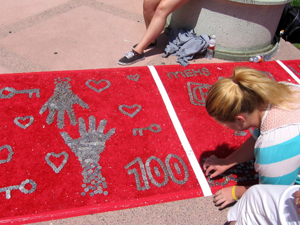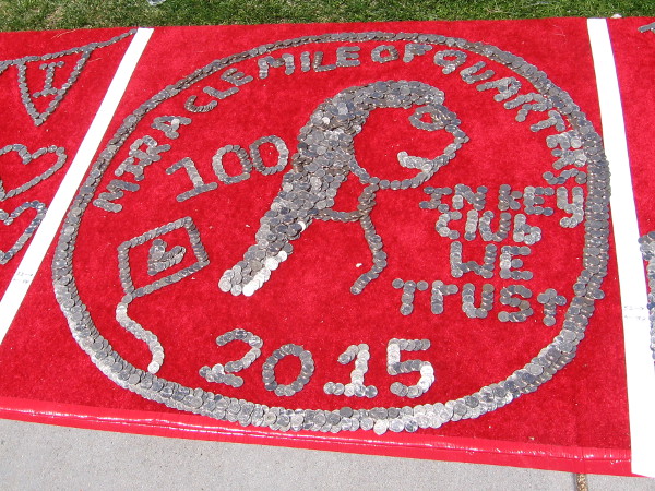Every year, the Division 100 Miracle Mile of Quarters Kiwanis Club San Diego (that’s quite a mouthful) raises money for Rady Children’s Hospital in a unique way. Thousands of patiently collected quarters are used by local kids to create works of inspirational art! The money is then donated to the hospital!