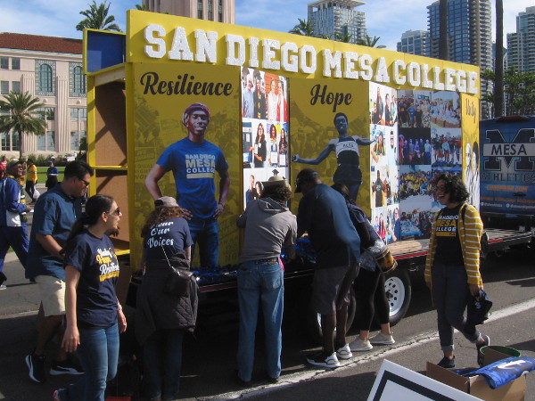 Lots of friendship and smiles up and down the street.Some Navy officers gather near the MLK Day Parade’s starting area.The San Diego Padres would be in the parade. They were waiting with some baseball balloons by the Maritime Museum.One benefit of being a member of the Maritime Museum of San Diego–I could freely watch the parade from atop one of the world’s most famous tall ships–the Star of India!Now I’m looking down from the deck above the historic ship’s forecastle. Joe who works at the museum and I had the best view of the parade all to ourselves!Look at all the folks gathering for the big MLK Day Parade. Every year, it’s one of the most popular parades in San Diego.From the Star of India we overlooked the parade’s starting point. Lots of groups were waiting by their vehicles, including these Homeland Security guys posing for a picture.I also spotted law enforcement officers from around San Diego and the Border Patrol.A pigeon joined us on the tall ship’s rigging. Funny how the politicians manage to always go first. I spotted Todd Gloria, Toni Atkins, Susan Davis and Shirley Weber.Tending to the flags.The parade has begun and here comes the Padres’ happy mascot, the Swinging Friar!The Chargers might be history, but San Diego’s beloved Padres remain a strong part of our wonderful community.I think those guys marching are the San Diego County Sheriffs.Oh, goodness! It’s the Geico gecko.Fellowship and laughter in one group before beginning down the parade route.From our cool vantage point above the starting point, sometimes the big event seemed like two parades in one!It’s a small planet. Perhaps we humans ought to be nice to one another. Martin Luther King, Jr. knew that love overcomes hate.I realized my small camera struggles at a distance, so after a bit I said bye to Joe and headed down to Harbor Drive to get closer shots.Here comes the Saint Peter Grand Lodge!Hello!Here comes a bright yellow float carrying some beauty queens!Wow–look at all the happy people. The Martin Luther King, Jr. Day Parade is a joyful celebration of human diversity and togetherness.Here come some drummers!I believe these guys are students from UCSD. The County Administration Building rises in the background.Lots of colorful costumes and finery representing different experiences and cultures. San Diego comes together as one family.Smiles, happiness and togetherness. May the parade go on and on…