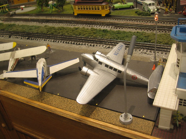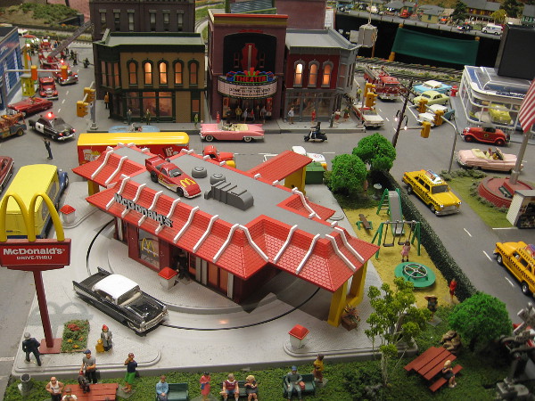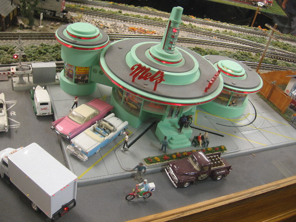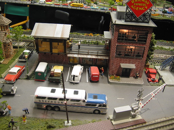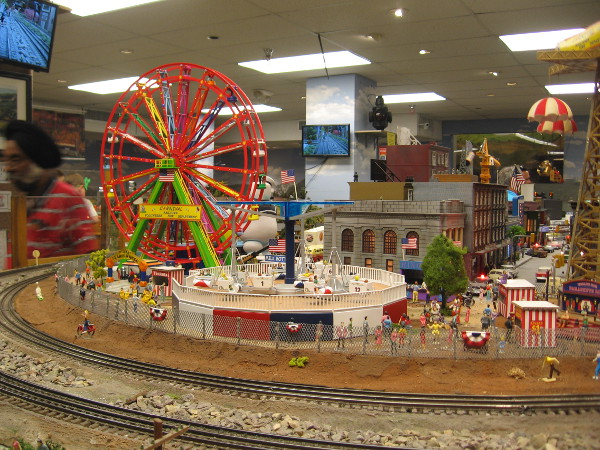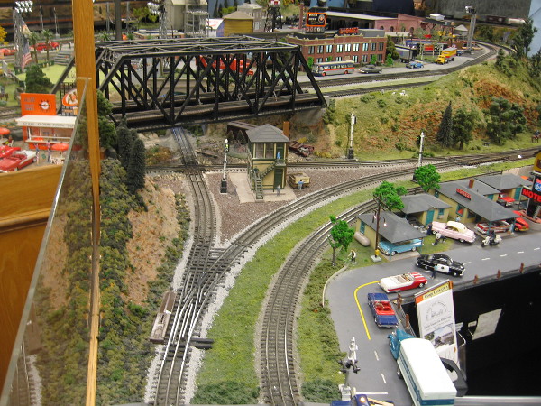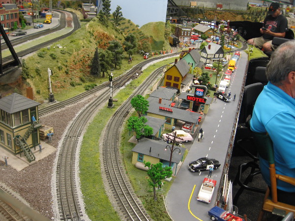 I love that big model train! It was created by Hollis Watrous in his garage workshop starting in 1960. He ran it on tracks in his backyard!