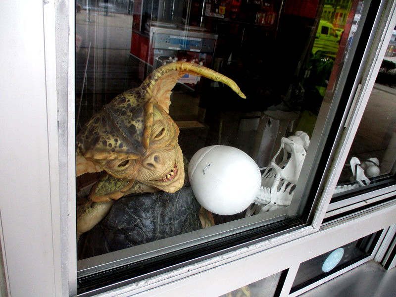 The Universal Monsters have been painted for fans of Comic-Con, and you can see the artwork on the windows of Sweet Things Frozen Yogurt, located at the Hilton San Diego Bayfront. The artist responsible is Shirish Villaseñor. (By the way, she’s one of the local artists renovating many of the historic murals in world-famous Chicano Park!)