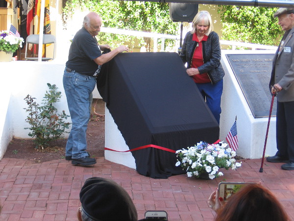 The Bill Muncey Memorial stands on Mission Bay’s beautiful Vacation Isle, on a grassy spot just north of the Ski Beach boat launch ramp. It rises above the nearby blue water like a wing flying through the sky.