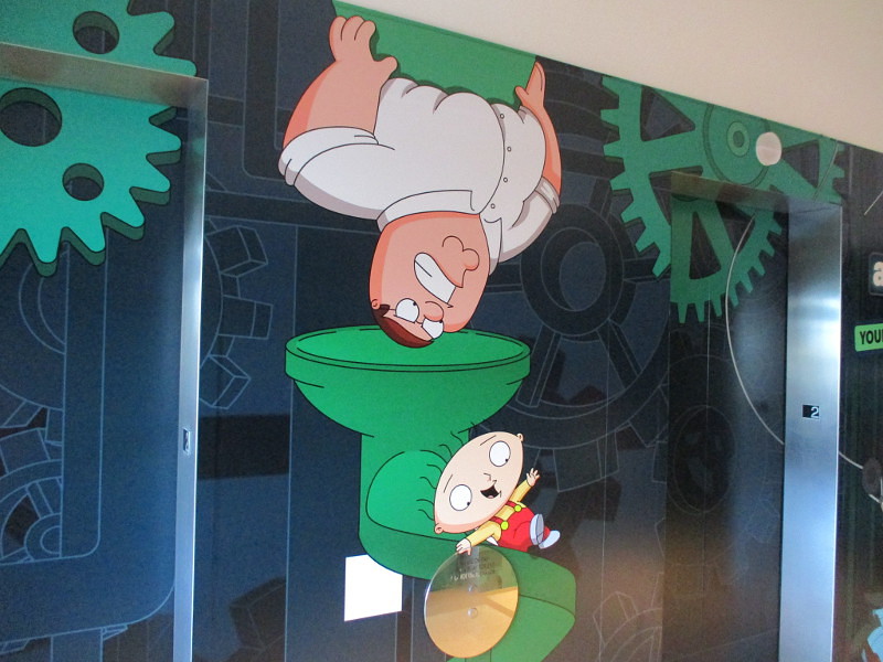 Quiet on early Wednesday morning at the Those About to Die offsite in Gaslamp Square.SpongeBob graphics now fill the Hard Rock Hotel! Check it out!SpongeBob greets guests at the Hard Rock Hotel’s front desk!The Petco Park Interactive Zone has more to go before it’s ready.Before you know it, crowds will be visible everywhere around the San Diego Convention Center.Hulu animated show graphics adorn the elevators at the Hilton San Diego Bayfront.Bart Simpson is loose in the hotel!The big FX offsite is quiet on Wednesday morning.Adult Swim will be having a pirate parrrty on the green!Do pirates and dinosaurs go together?The IMDb Boat appears about ready.The entrance to the long green Hulu animayhem tunnel.It was early. Few people about.I didn’t realize pirates could board ships so easily.The A.V.A. FEST is looking ever more festive.Blessed and Pressed.The Dragon Ball offsite is looking just as cool as ever.Setting up the transportation tent near Harbor Drive.This will be the Bathroom Battlestation offsite, on First Avenue just north of Harbor Drive. The Mr. Beast Labs offsite is also supposed to be on this parking lot–where cars are still parked! Better get busy!I love Peanuts. Two of their classic television specials in the window of their offsite activation along MLK Promenade.The Subway sandwich sign spinners are ready on Fifth Avenue!