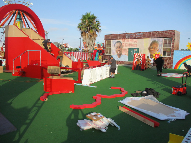 Comic-Con’s many offsite activations are in a big hurry to have everything ready to open tomorrow.