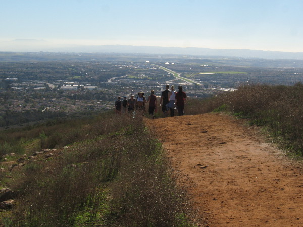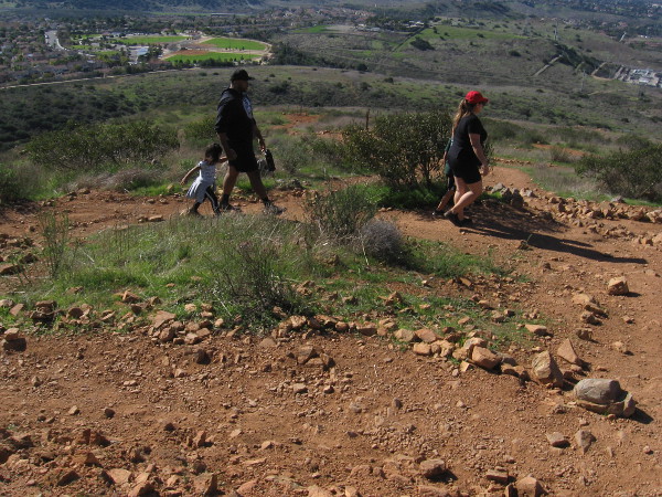 Looking back down the trail, you can see green Mount San Miguel Park with its sports fields, not far from the trailhead.