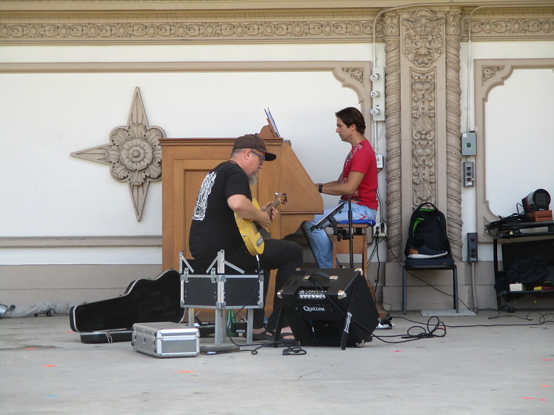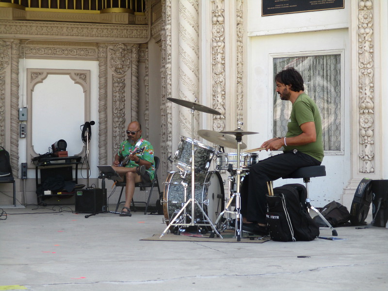 People wandering through the park settled onto the pavilion’s benches to enjoy the awesome practice session. How does the Spreckels Organ sound when accompanied by drums and electric guitar? It rocks!