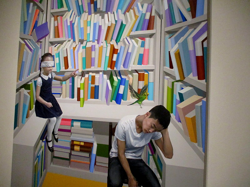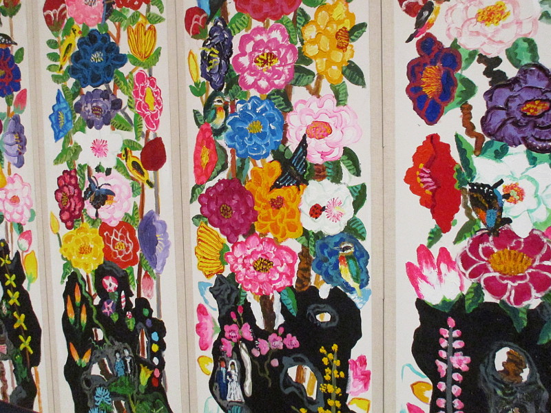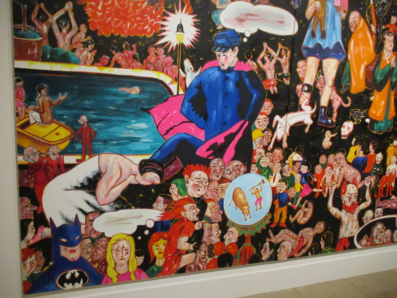 The scroll in my first photograph refers to two other works he has created, the Portal to Heaven and the Gates of Hell. Apple and cloud are accompanied by the words: It was not always like this. Seems everything changed with one bite of the forbidden fruit.