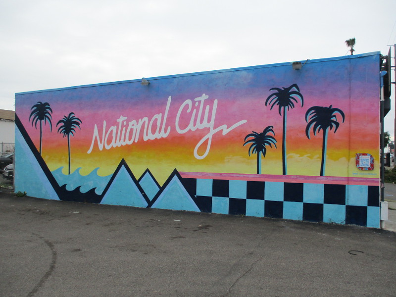There are two large, colorful murals painted on the former location of PROJX2PRINT in National City.