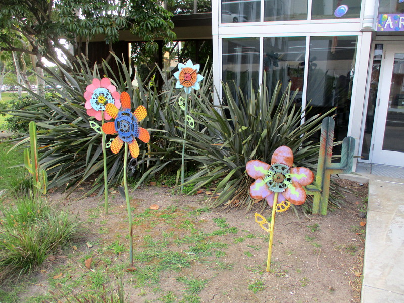 Colorful flower sculptures greet visitors to A Reason To Survive (ARTS) in National City. They’ve sprouted near the front entrance.
