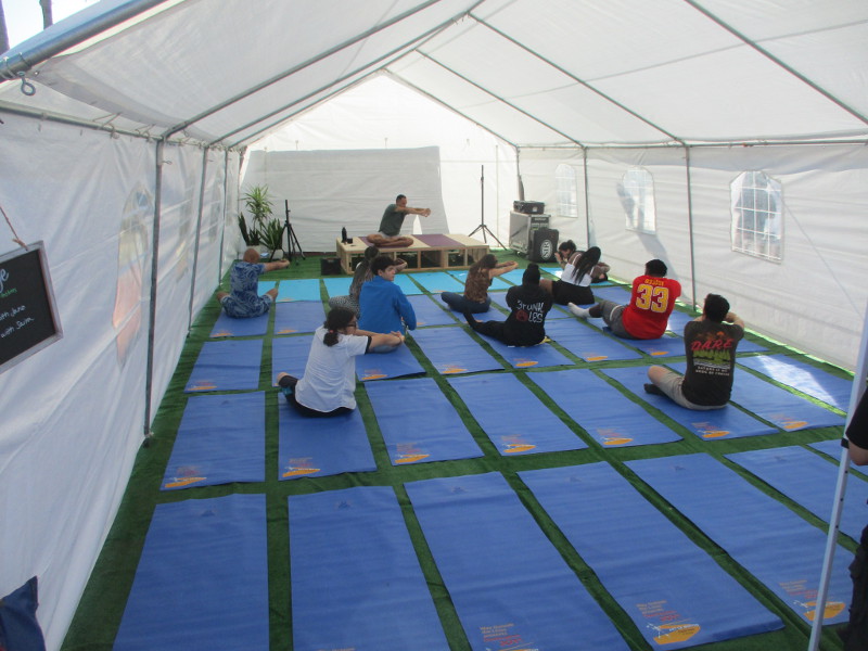 At the E Street Transit Center in Chula Vista, the roving group would enjoy more outdoor activations. The theme here was Art of Motion. Anyone who happened to come by the trolley station could participate in yoga and other healthy activities.