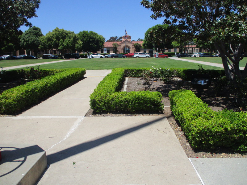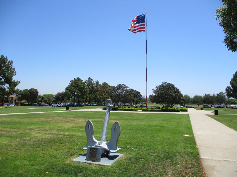 Gate One was the main entrance to Naval Training Center San Diego, and the grassy area with an anchor behind it is Sellers Plaza. As this webpage explains: Named for the base’s first commander, Sellers Plaza serves as the Naval Training Center’s front door.