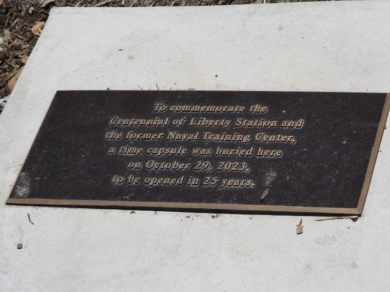 To commemorate the Centennial of Liberty Station and the former Naval Training Center, a time capsule was buried here on October 29, 2023, to be opened in 25 years.