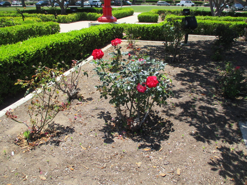 After pausing at the anchor to read its plaque, I walked into the plaza’s center near the flagpole, where there are beds of roses. (I took these photos in spring.)