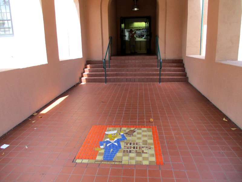 The Enlisted Men’s Club would be called The Crow’s Nest, then later The Ship’s Bell. The mosaic greeted sailor recruits who wanted to get away from officers for a little relaxation and entertainment. The club was open every night and provided a variety of music and drink to anyone over 18 years of age.