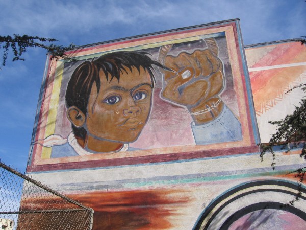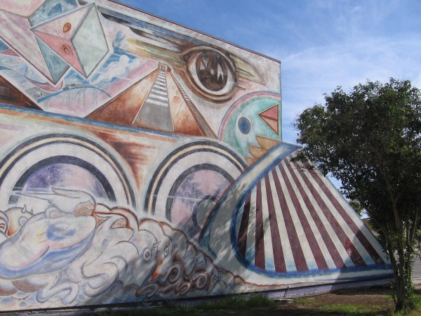 It can be seen at the south end of a building that features another amazing work of art. At its back, on a large wall that very few people see, is a mural painted by internationally recognized Chicano artist Mario Torero.