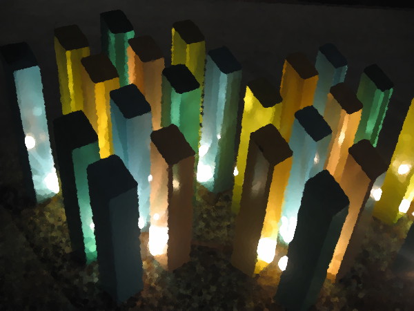 After the sun set this evening, I sat on a nearby park bench and watched as people stopped to peer into the dreamlike Stellarium. Some pressed a button at the cube’s base to listen to Mitchell’s recorded audio narration.