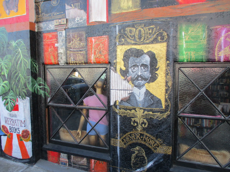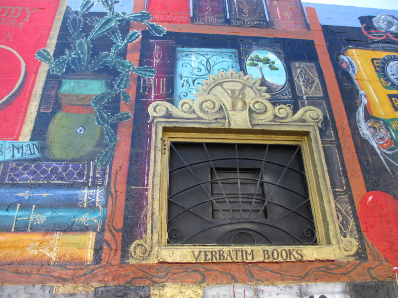 The mural at Verbatim Books is so brilliant and surprising and so alive with colorful detail, it’s like a colossal outdoor bookshelf demanding to be explored!