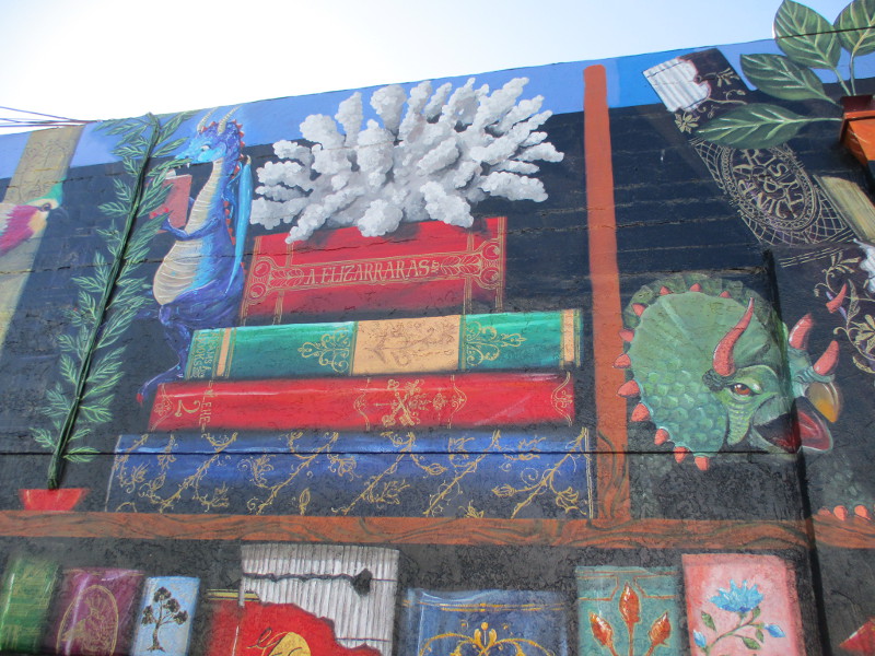 The artist who painted this fantastic 90-foot mural is Armando Hernandez (@elizarraras_art). I met him very briefly last year at the North Park Book Fair. I posted a photo of his Edgar Allan Poe with The Tell-Tale Heart here!