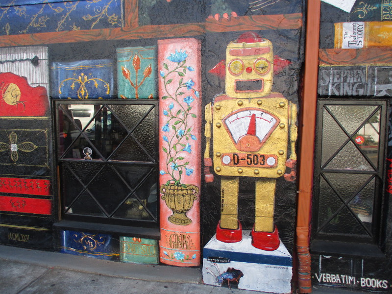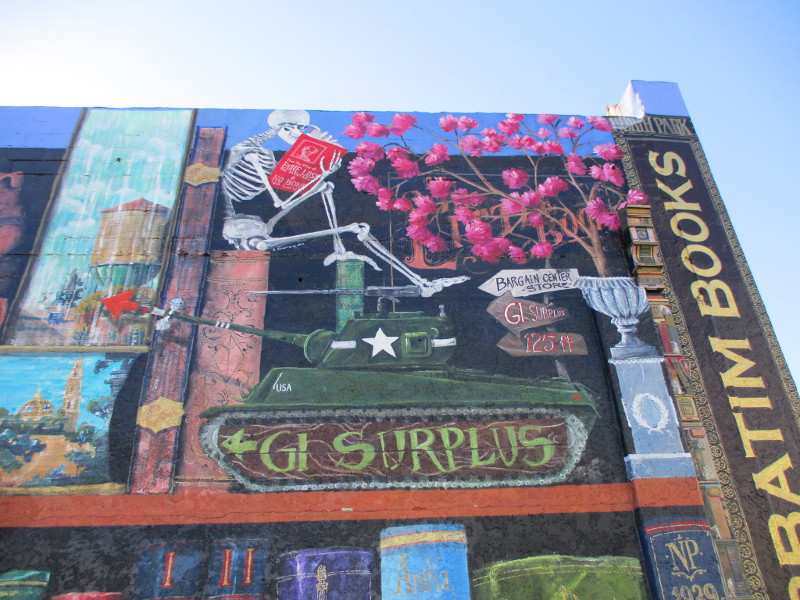 A positively amazing mural was painted a year ago in North Park on the side of Verbatim Books. You have to see it to believe it!