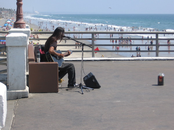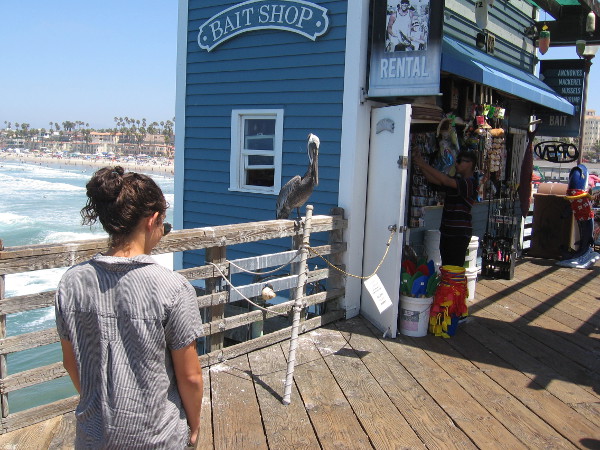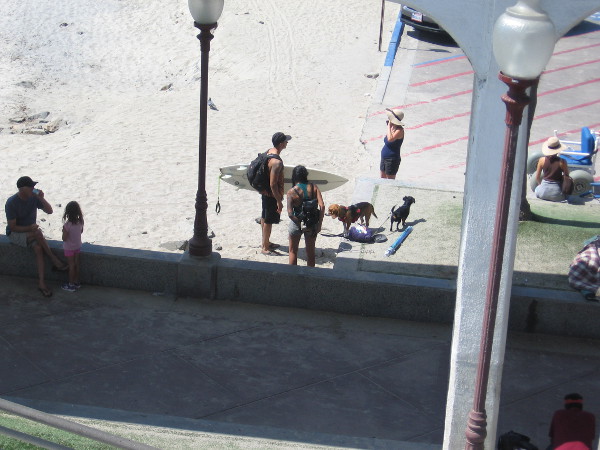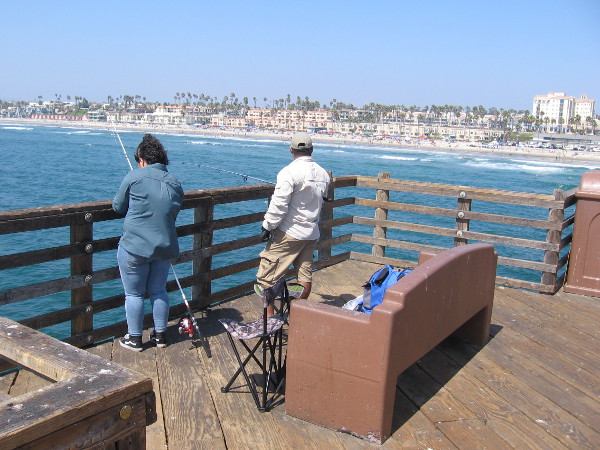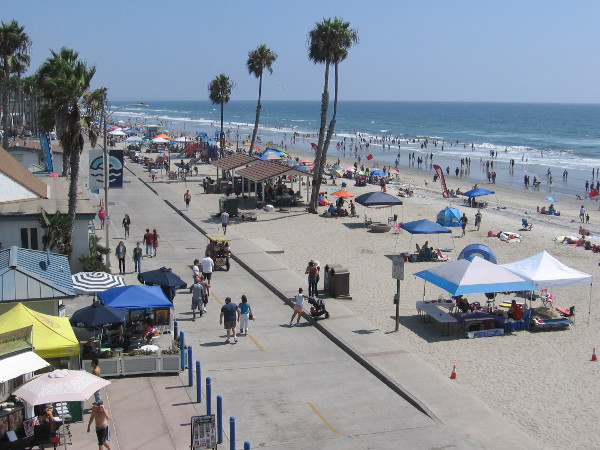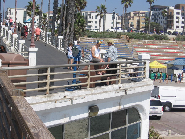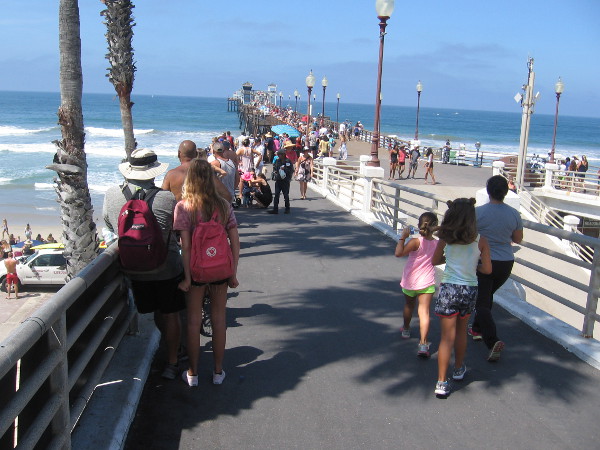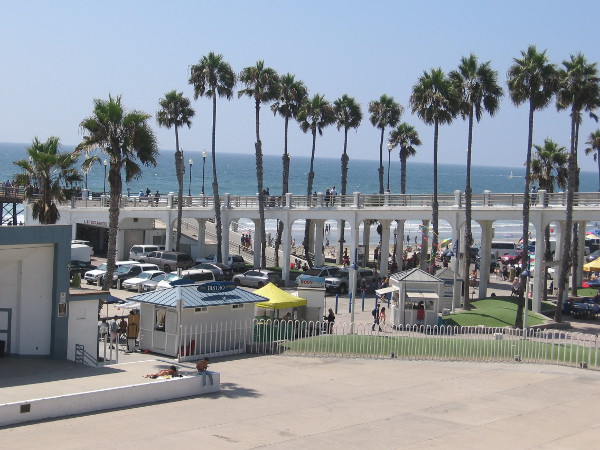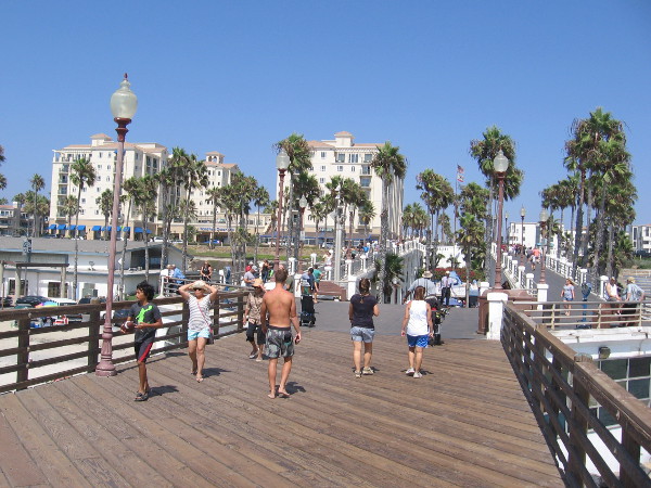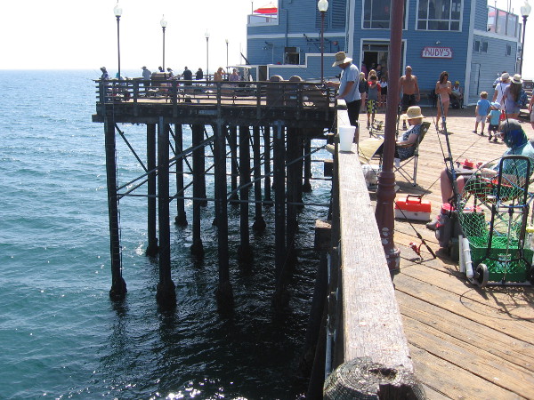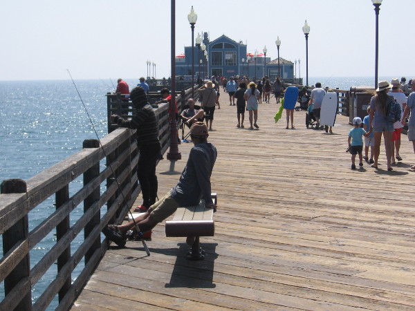 I experienced sunshine, the sparkle of the Pacific Ocean, a fresh sea breeze, the smell of wood, the cry of seagulls . . . and happy people all around: strolling, fishing, listening to music, talking, eating ice cream, leaning over the rail gazing down at the colorful beach and surfers in the blue water awaiting the perfect wave…