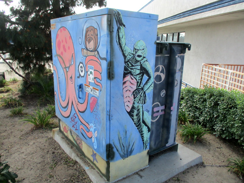I saw this fun street art during a long walk through National City this morning. My objective was to photograph the new Historic California US 101 Route street signs that were recently erected along National City Boulevard. (That post will be coming up shortly.)