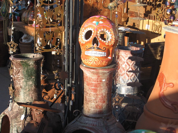 There was a folklorico competition and lucha libre demonstrations (which I missed), giant puppets, Aztec dancers, kids’ crafts, mariachi music, and authentic Mexican food at every turn. There were many people in traditional Mexican dress and others in period costume from the early days of San Diego. I enjoyed checking out a bunch of sweet lowrider cars and a row of shiny, customized kids’ bikes that were definitely super cool. I paused to visit the donkeys near Seeley Stable, guys hammering red hot iron in the blacksmith shop, a silly street performer with a plunger on his head, and a gentleman in La Casa de Estudillo who was playing frontier games of chance against all comers. As I walked about I even spotted some chalk art.