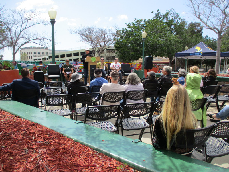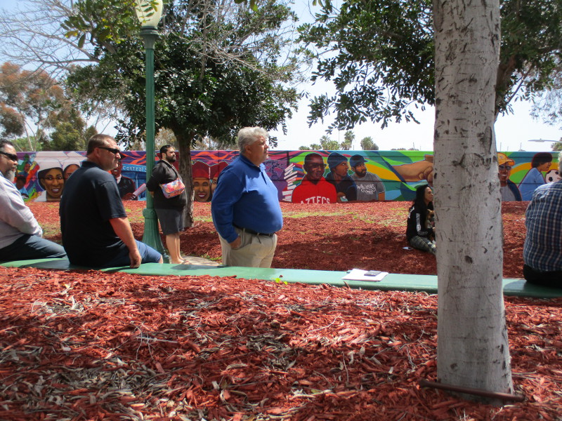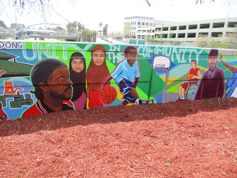 Several speeches told of how, with the work of many, a once neglected and crime-ridden park has been reclaimed and revitalized. We all celebrated how this mural, with its many positive images, will build pride and a sense of ownership in the community. How this mural conveys diversity, harmony and acceptance. How this mural will become a backdrop for future community events, such as a proposed Taste of City Heights!