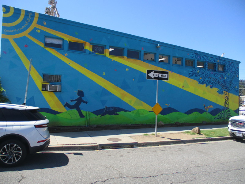 When I returned to Washington Park in Escondido yesterday, I noticed that four more positive murals have been painted by local students on two of the community center buildings. Click here to see the murals I found during my walk through Washington Park last spring.