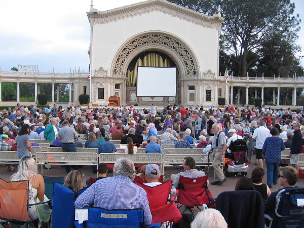 People begin to gather in the Spreckels Organ Pavilion well before the start of the Silent Movie Night concert.