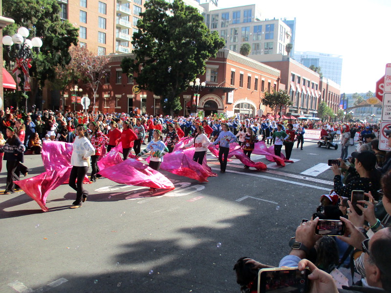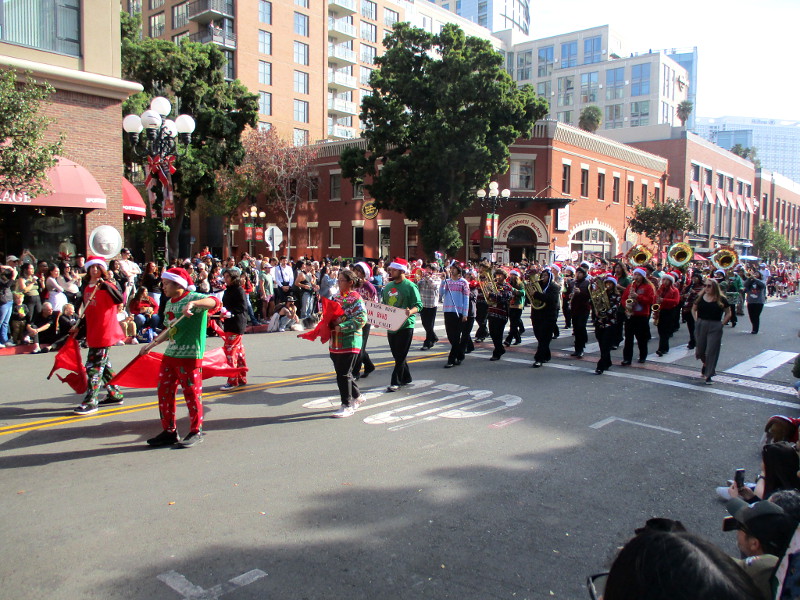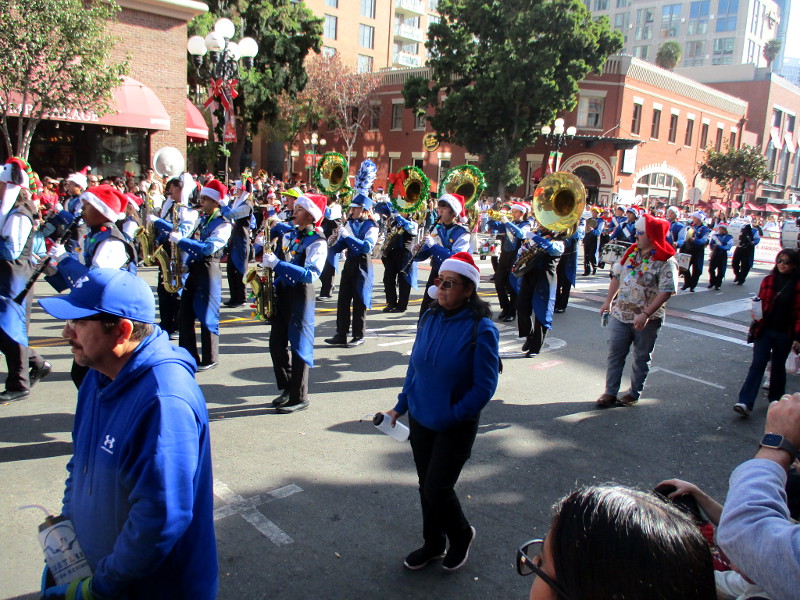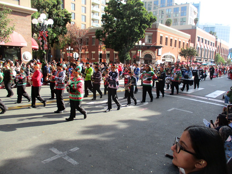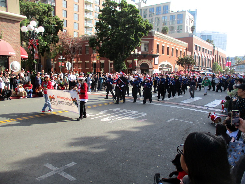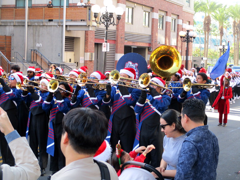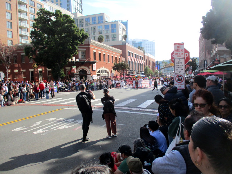 In the mid-morning I stood with spectators along North Broadway at the edge of Grape Day Park. A group assembled on the street in front of Review Stand 1 sang the National Anthem. Then a minute or two later…here came the parade!