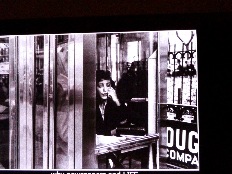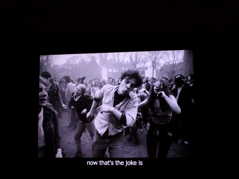 I took my own photos from a video in the exhibition, where Garry Winogrand provides his thoughts on photography. (That explains the subtitles.)