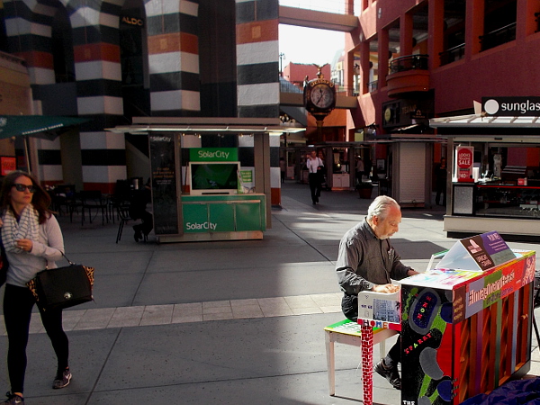 Amazing talent takes a seat in Horton Plaza. This gentleman was walking through the shopping mall and saw the piano. He sounded like a professional musician!