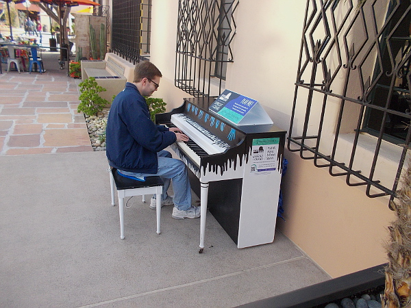 This fellow enjoyed playing another public piano, which has been placed at The Headquarters, near Seaport Village.