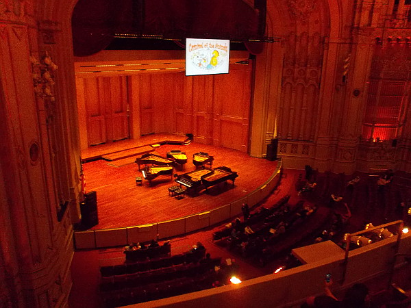 Six grand pianos were set up on the stage. I enjoyed the first hour of the event, which featured The Carnival of the Animals by composer Camille Saint-Saens, with poems by Ogden Nash.
