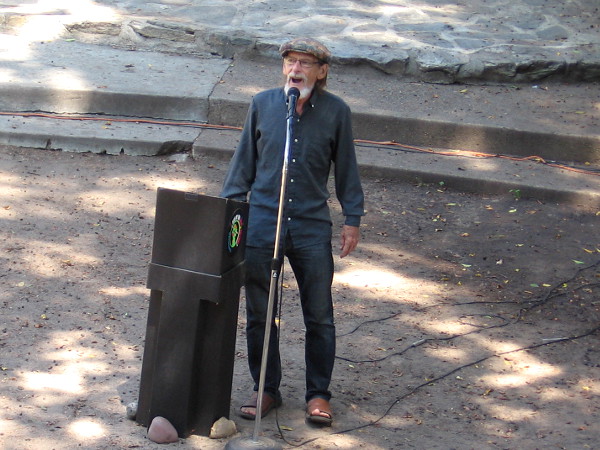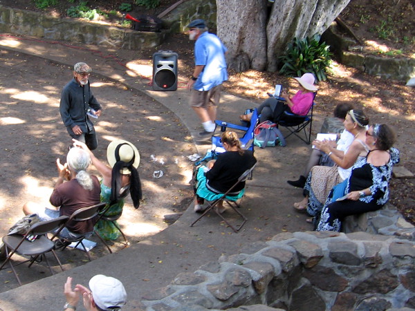 Today during my extensive walk through Balboa Park, I happened to stumble upon this summer’s weekend Garden Theatre Festival. As I entered the stony, amphitheater-like Zoro Garden, live poetry readings were underway. Everyone in the audience was invited up to the microphone to read poetry!