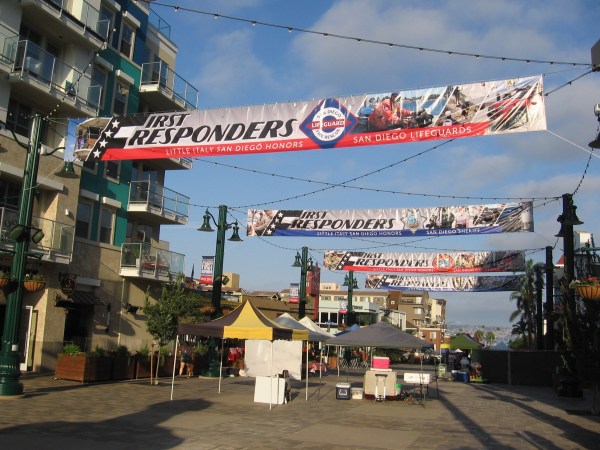 This morning as I walked through Little Italy, I happened to see several banners stretched above the piazza honoring our community’s First Responders, including our Lifeguards, Sheriff, Firefighters and Police.