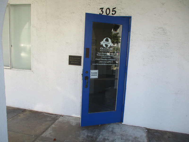 Walk along the north side of the Oceanside Civic Center and you might spy the door of the Oceanside Historical Society. The unobtrusive glass door is a portal to Oceanside’s past!