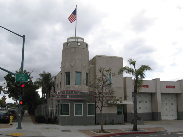 I’ll begin at the beginning–walking in the mid-morning from downtown San Diego to the top of Golden Hill. I headed east along Broadway, crossed Interstate 5, then began my climb up the hill, looking this way and that. Here are a few interesting things I saw, starting at the Police Headquarters located at 14th and Broadway…