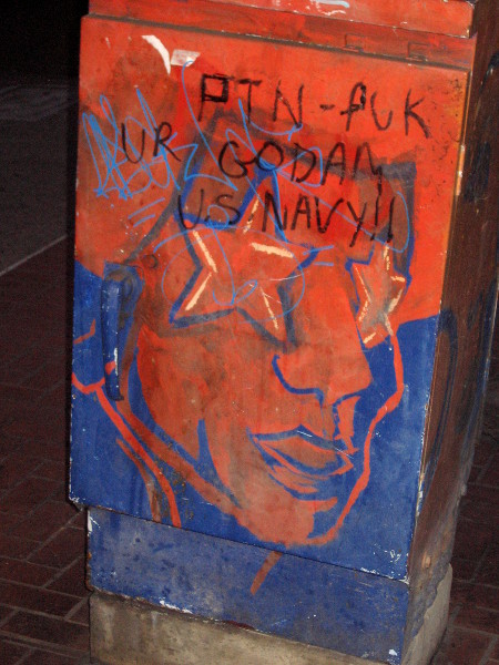 Here’s another branch of San Diego’s strange and whimsical Bart Club! This example of Bart Simpson street art decorates a single utility box, located in North Park at the intersection of 30th and Adams Avenue.