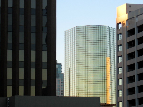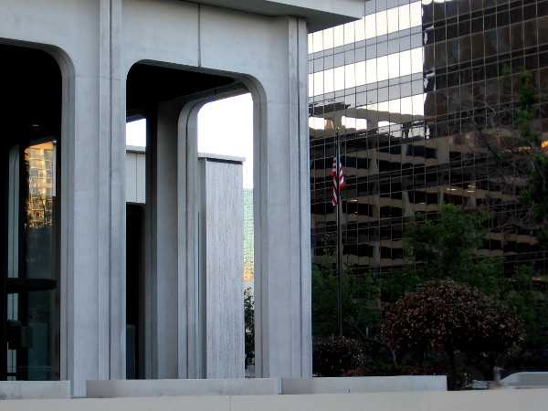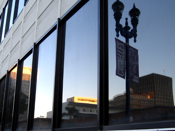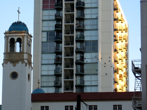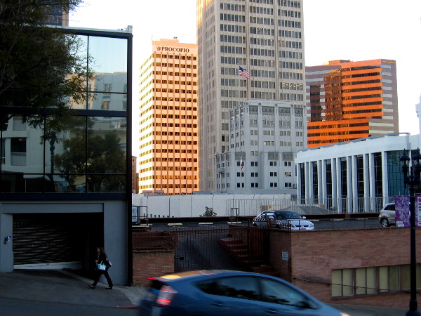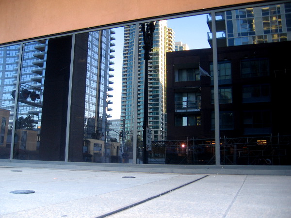 I was getting ready to board a trolley this evening at America Plaza when activity in a window caught my eye.