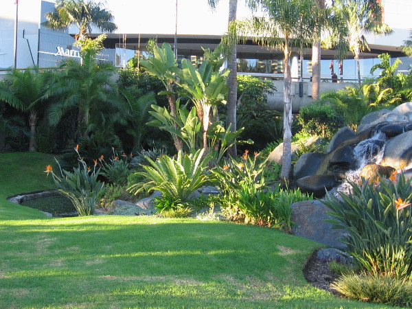 I’ve lived in downtown San Diego for years and years. But apparently I still have much to discover. Because I had no idea that the Marriott Marquis on our waterfront has a hidden parklike hollow, in a place where seemingly few people venture.