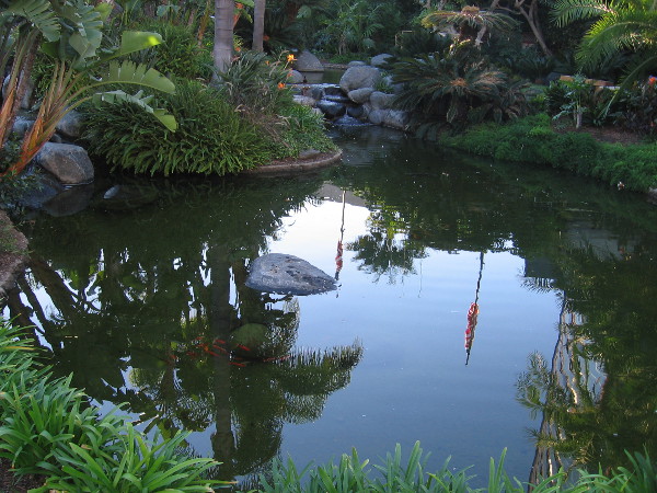 There’s no clear footpath to the hollow. But there is a fish food dispenser and a couple of stone benches, and plenty of tranquil beauty. Hotel guests who’d like to unwind and quietly relax have their own secret garden, a place for meditation in the middle of bustling San Diego!