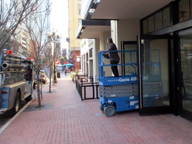 Looks like the above photo was taken around the holidays–I see a red ribbon. While I love City Pizzeria, I believe I captured this image in front of Valentine’s Mexican Food as I waited for combo number one.