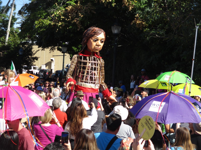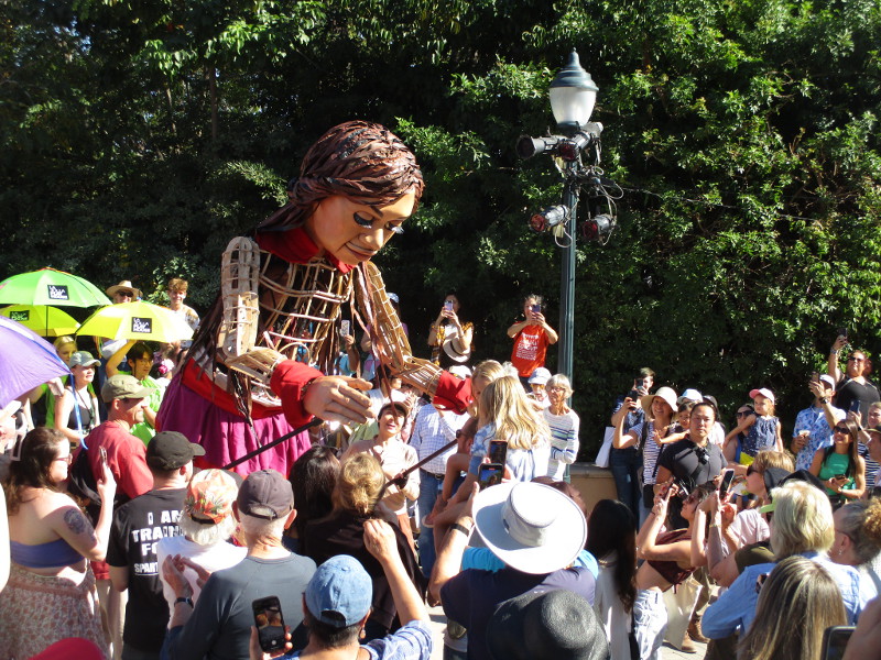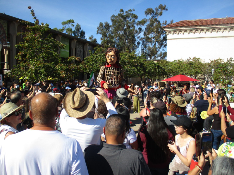 Post-like structures overlooking El Cajon and distant mountains in East County contain messages of welcome and belonging. Most of the nearby garden plots are tended by refugees. Many of these refugees are Iraqis who’ve fled persecution. By selling fresh vegetables at local farmers markets, a little extra income might be obtained.