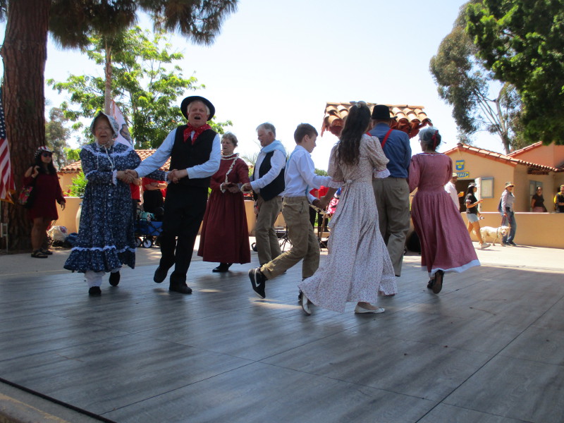 The speakers were followed by several dances that would be typical during this era of American history. The Folk Dancers of Balboa Park danced to She’ll Be Coming Round the Mountain, the Virginia reel and other familiar tunes.